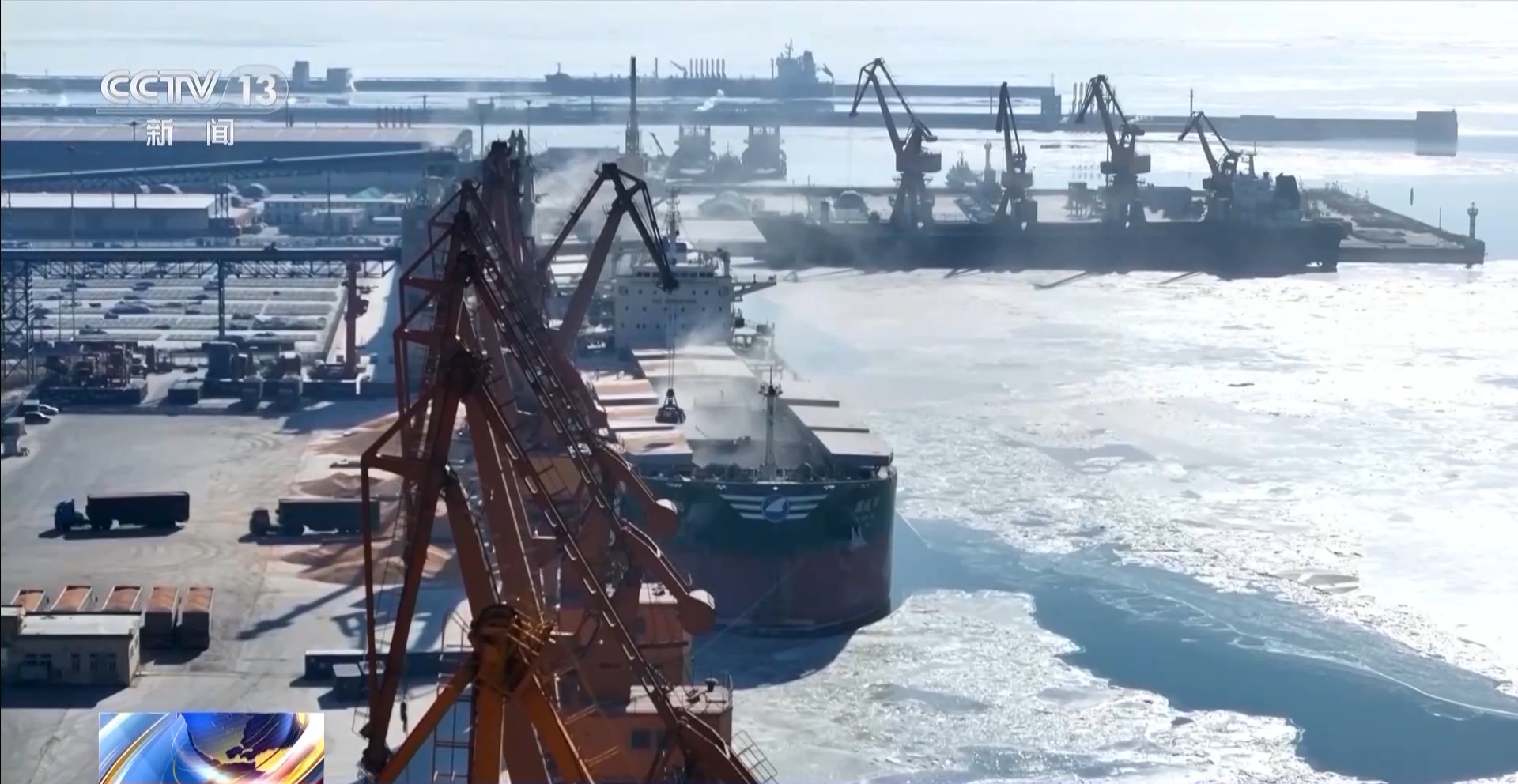 为了保障北粮南运、北煤南运的冬季运输,锦州当地的海事部门动态研判海冰发展,启动冰期联防机制,及时向辖区船舶发布冰情通报。